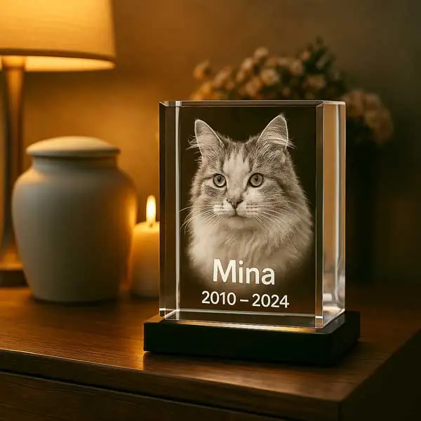 Hommage discret pour chat ou chien : gravure 3D lumineuse et durable
