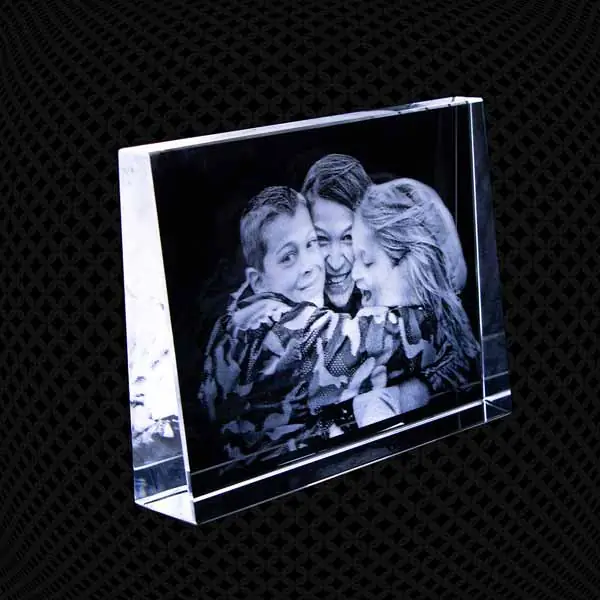 Que vous choisissiez un portrait fort, un duo ou un petit groupe, nos infographistes optimisent votre visuel (cadrage, netteté, contrastes, suppression d’éléments gênants si nécessaire) afin de préserver une lecture claire des visages et un rendu harmonieux. Le prisme trapèze verre 18×13 peut être posé seul sur un meuble, ou sublimé avec un socle lumineux dédié qui diffuse un halo doux et met en relief chaque détail de la gravure.