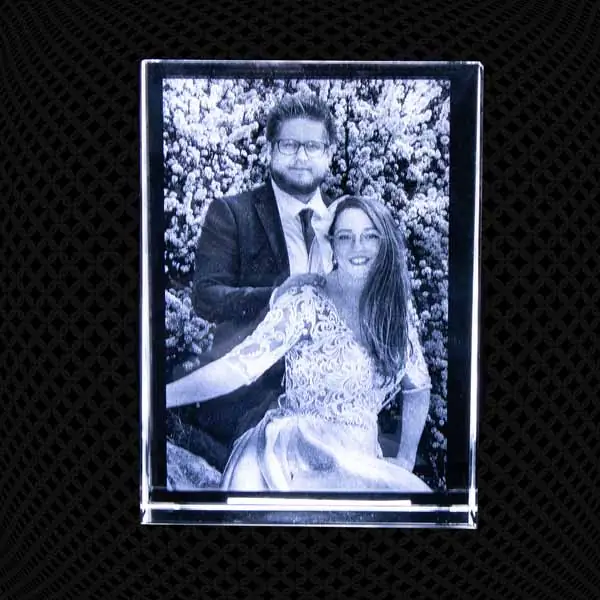 Avant la gravure, votre visuel est préparé par un infographiste : recadrage, amélioration de la netteté et des contrastes, suppression d’éléments gênants si nécessaire. L’objectif est d’obtenir une gravure harmonieuse et lisible, fidèle à l’émotion d’origine. Le format 18 × 13 cm convient parfaitement à un portrait marquant, un duo ou un petit groupe, tout en conservant une bonne lecture des visages.