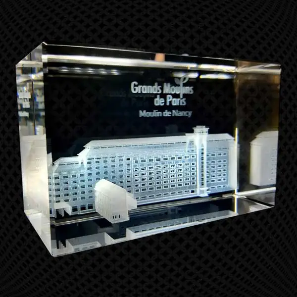 Voir le procédé : la gravure 3D sous-surface concentre le faisceau à l’intérieur du verre pour former des milliers de micro-points qui composent l’image en volume, sans recouvrir la surface. Découvrez le processus en action dans notre démonstration vidéo de gravure laser 3D sur verre.